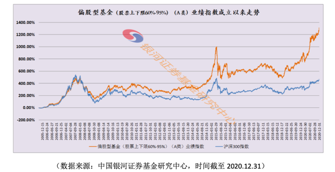 银华基金此前有分析过,长期持有基金并不意味着“躺赢”,期间还会遇到许多“考验”。据中国银河证券基金研究中心统计,以偏股型基金为例,过去十五年 (20060101--20201231)累计涨幅高达1294.88%,年化收益率超过19%。不过,从下图走势可以看出,其上涨之路并非“一马平川”,而是不断震荡、高低起伏,可整体还是呈现上行趋势。但假如投资者在某一次回撤的过程中放弃了持有,或许就难以分享丰厚的胜利果实。