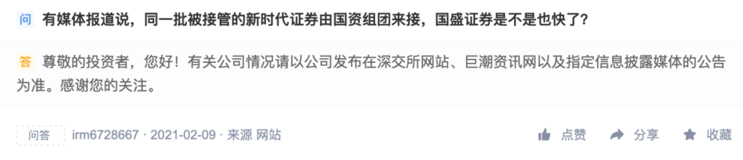 在市场人士看来,接管原因是因为两家券商隐现“明天系”背景。困扰国盛证券发展的“股权”问题也备受市场关注,投资者互动平台上,去年至今一直有投资者对此不断提问。