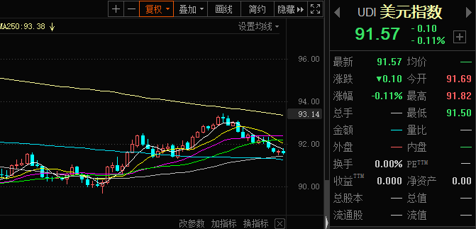 最近美元持续杀跌,美元指数从93上方跌落。