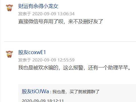 还有的投资者说是一个叫欢水哥、杭州老马的人给骗了。