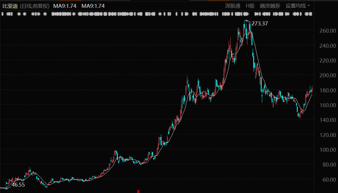 从市场表现来看,自去年披露计划到减持实施期间,比亚迪股价累计上涨45%,但随后比亚迪股价继续强势上涨,截至今年2月份累计斩获2倍涨幅;不过随后股价持续下调,截至目前累计跌幅达到32%,最新收盘181.68元/股,几乎是去年减持期间均价的3倍。