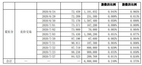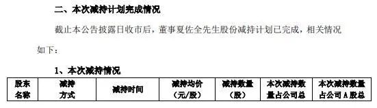 截至本公告日,董事夏佐全在深圳证券交易所通过竞价交易方式合计完成680万股的减持,权益变动前夏佐全持股3.716%,权益变动后持股比例为3.467%。