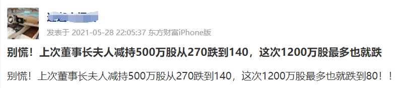 更有网友表示,上次董事长夫人减持500万股从270跌到140,这次1200万股最多也就跌到80!!