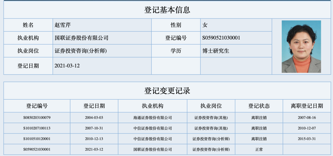 其中有一名研究领域“老人”值得关注。赵雪芹于2021年3月正式在国联证券登记备案,根据券商中国记者获悉,赵雪芹已出任国联证券研究所所长。