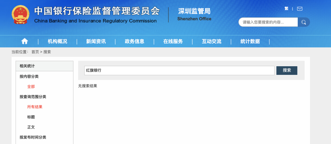 然而,券商中国记者查阅国家企业信用信息公示系统,并未发现有关于任何“红旗银行”的工商信息注册登记。记者在深圳银保监局网站上也未查到相关信息。