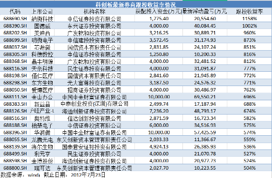 得益于科创板硬核上市标准及企业项目的优质特征,跟投机制安排虽然相对特殊,但也让参与其中的券商机构赚得“盆满钵满”。