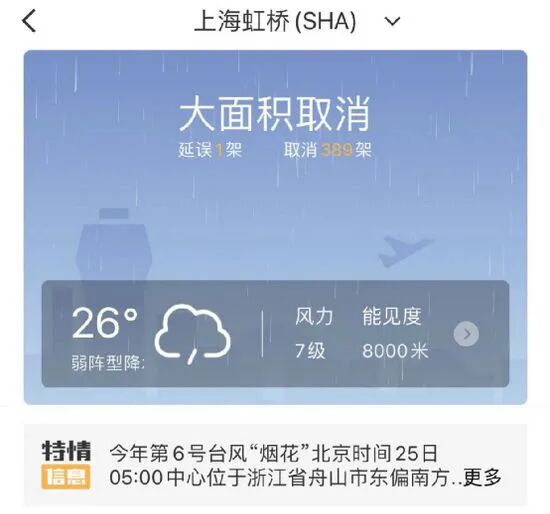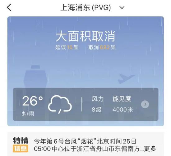 南方航空:受台风“烟花”带来的大风与强降雨影响,南航计划取消25日在浦东、虹桥、杭州、宁波、义乌、温州、台州7个机场的所有进出港航班。南航将密切关注台风路径及周边天气变化,研判台风对航班运行的影响,并据此加紧调配运力,编排航班计划,条件允许后,第一时间恢复航班并安排补班,以保障旅客顺畅出行。