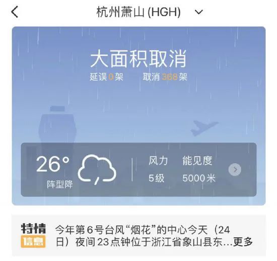 宁波栎社机场:7月25日宁波机场所有航班取消。各航空公司针对台风烟花都会实行特殊的航班退改政策,旅客在行程确定后,要及时通过航空公司了解所乘航班的动态信息,旅客也可以通过拨打宁波机场旅客服务热线:0574-81899000了解所乘航班的运行动态。