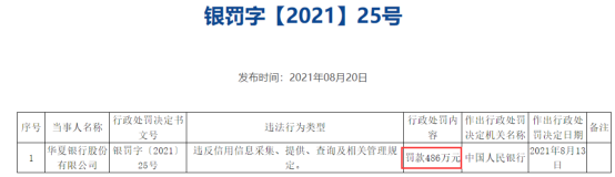 此外,交通银行、华夏银行、兴业银行因违反信用信息采集、提供、查询及相关管理规定,分别被罚款62万元、486万元、5万元。