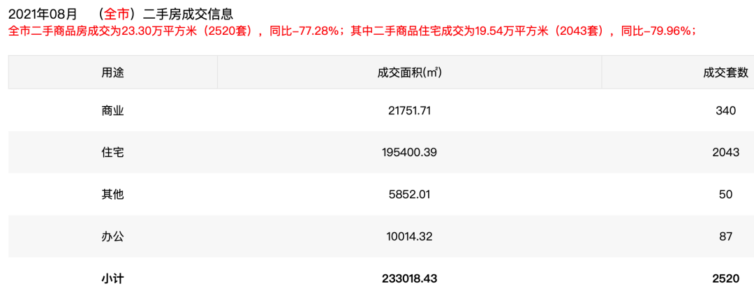 深圳住建局数据显示,8月深圳全市二手商品房成交为23.30万平方米,同比-77.28%;其中二手商品住宅成交为19.54万平方米,同比-79.96%。而从套数来看,8月深圳二手住宅成交量连续第5个月下跌,仅成交2043套,相比去年同期的11322套,同比下跌81.96%。