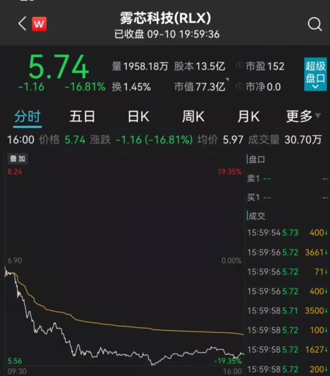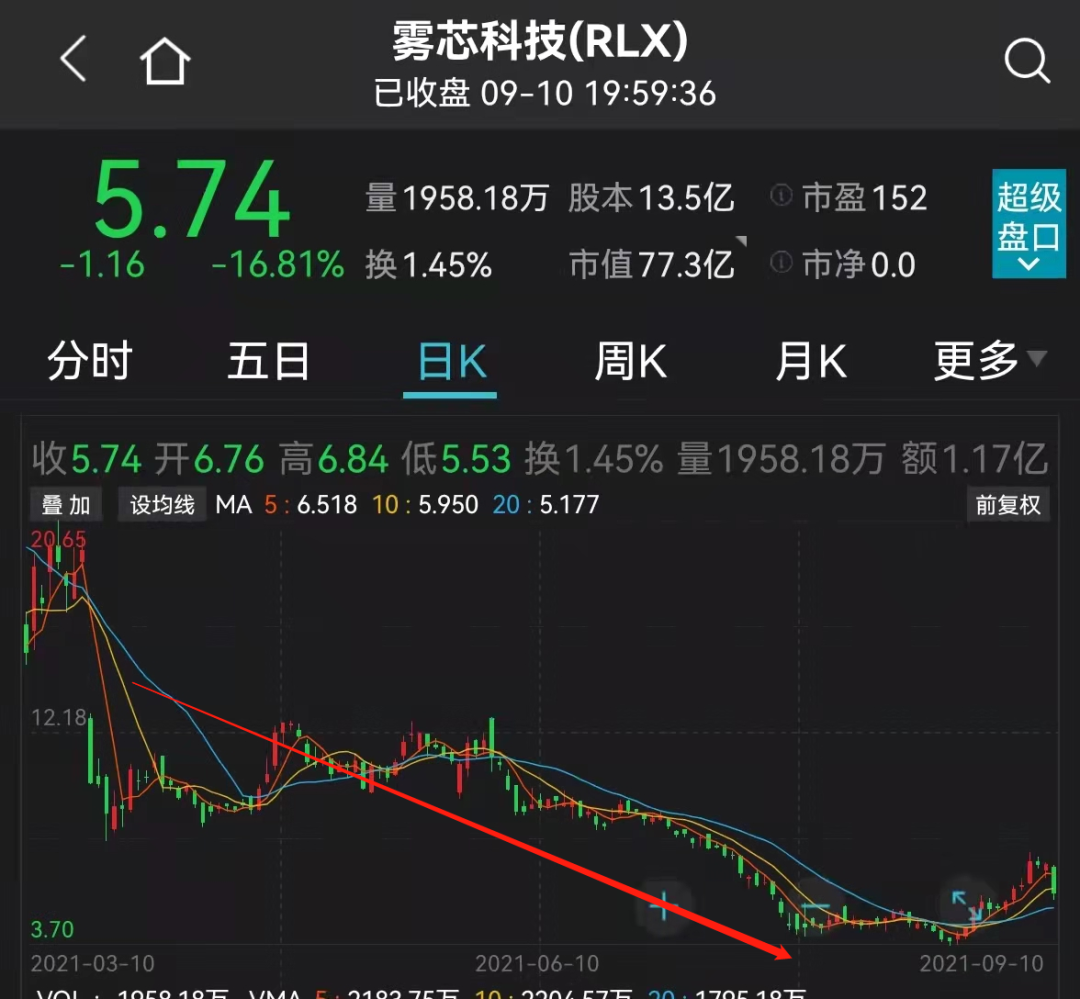 除此之外,在美国上市的雾芯科技(悦刻)昨晚也大跌16.81%。