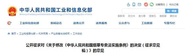 今年3月22日,根据工信部网站消息,为加强对电子烟等新型烟草制品的监管,工业和信息化部、国家烟草专卖局研究起草了《关于修改〈中华人民共和国烟草专卖法实施条例〉的决定(征求意见稿)》,现向社会公开征求意见,反馈意见的截止日期为2021年4月22日。