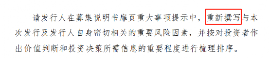 最后,深交所要求公司在募集说明书扉页重大事项提示中,重新撰写与本次发行及发行人自身密切相关的重要风险因素,并按对投资者作出价值判断和投资决策所需信息的重要程度进行梳理排序。