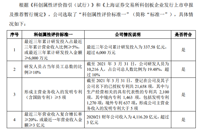 招股书申报稿显示,联想集团选取了第一套“科创属性评价标准”,其中涉及研发投入、研发人员、发明专利、营业收入4项指标。联想集团指出,公司4项指标均远高于科创板上市要求。