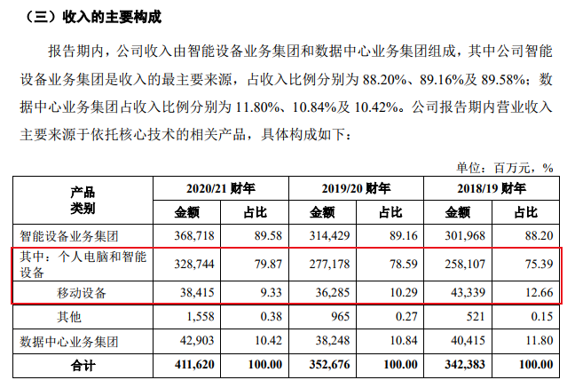 联想集团称,公司是全球领先的ICT科技企业。公司核心业务包括智能设备业务集团和数据中心业务集团两大板块,其中智能设备业务集团产品报告期内收入占比接近90%,产品包括个人电脑、智能手机以及AR/VR 设备、智能门锁、投影仪等一系列智能设备,根据《上海证券交易所科创板企业发行上市申报及推荐暂行规定》,属于“新一代信息技术”行业中的“物联网和智能硬件”领域;数据中心业务集团主要包括服务器、存储设备、软件定义解决方案、高性能集群等产品,提供了多样化的硬件设备和基于硬件设备的服务,并为大型云服务提供商提供云基础设施和解决方案,属于“新一代信息技术”行业中的“云计算”领域。
