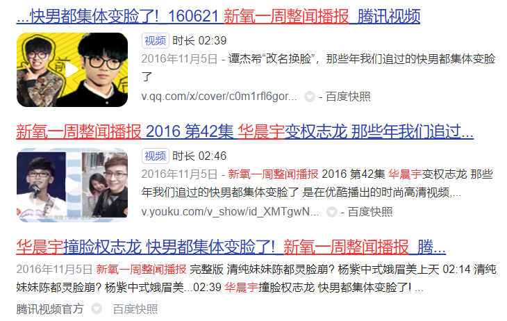 在2016年的一期节目中,绝大多数的视频内容都用了类似“华晨宇变权志龙,快男都集体变脸了!”这样的标题,暗戳戳地在节目中表示,当年那些快男都通过微整形,现在越来越帅气了。