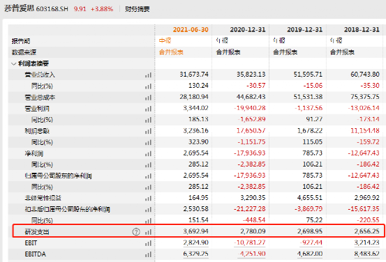 而半年报数据来看,公司报告期内在研发上的支出有了较大投入。截止今年6月30日,公司已投入3692.94万元用于研发,比去年全年总投入还要多出一千多万元。