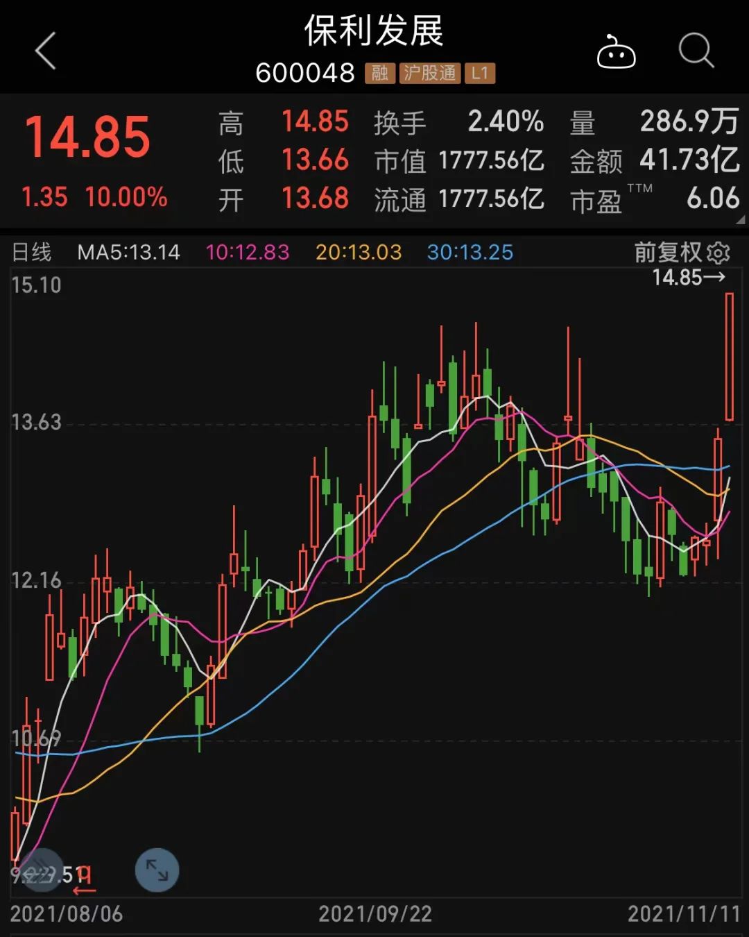保利发展是专注于房地产开发及销售的大型企业集团,前三季公司实现营业收入1383.87亿元、归母净利润135.83亿元,同比分别增长17.87%、2.88%。截至三季度末,公司资产负债率为77.93%,货币资金为1321.09亿元,为公司短期借款及一年内到期的非流动负债的2.32倍,短期偿债能力较强。