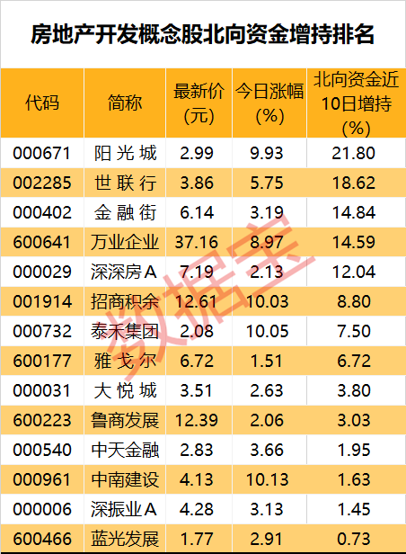 受多重利好刺激,地产股集体爆发,房地产开发指数大涨6.2%,北向资金及融资客近期分别加仓17股、14股,其中,3股获两大主力集体增持。