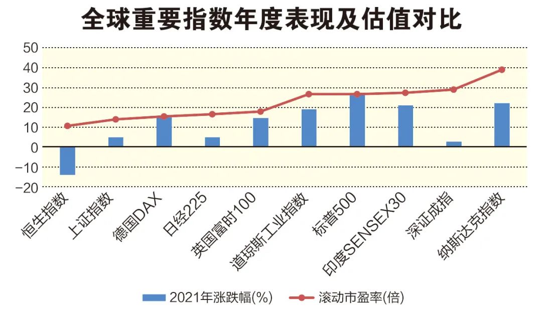 放眼2021年全球资本市场,标普500、纳斯达克指数年度涨幅均超过20%。A股市场波澜不惊,上证指数年度涨幅不到5%。