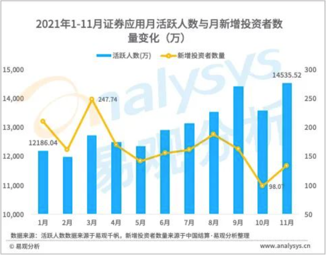 “月活增长”、“用户粘性”是2021年证券服务应用数据的两大关键词。