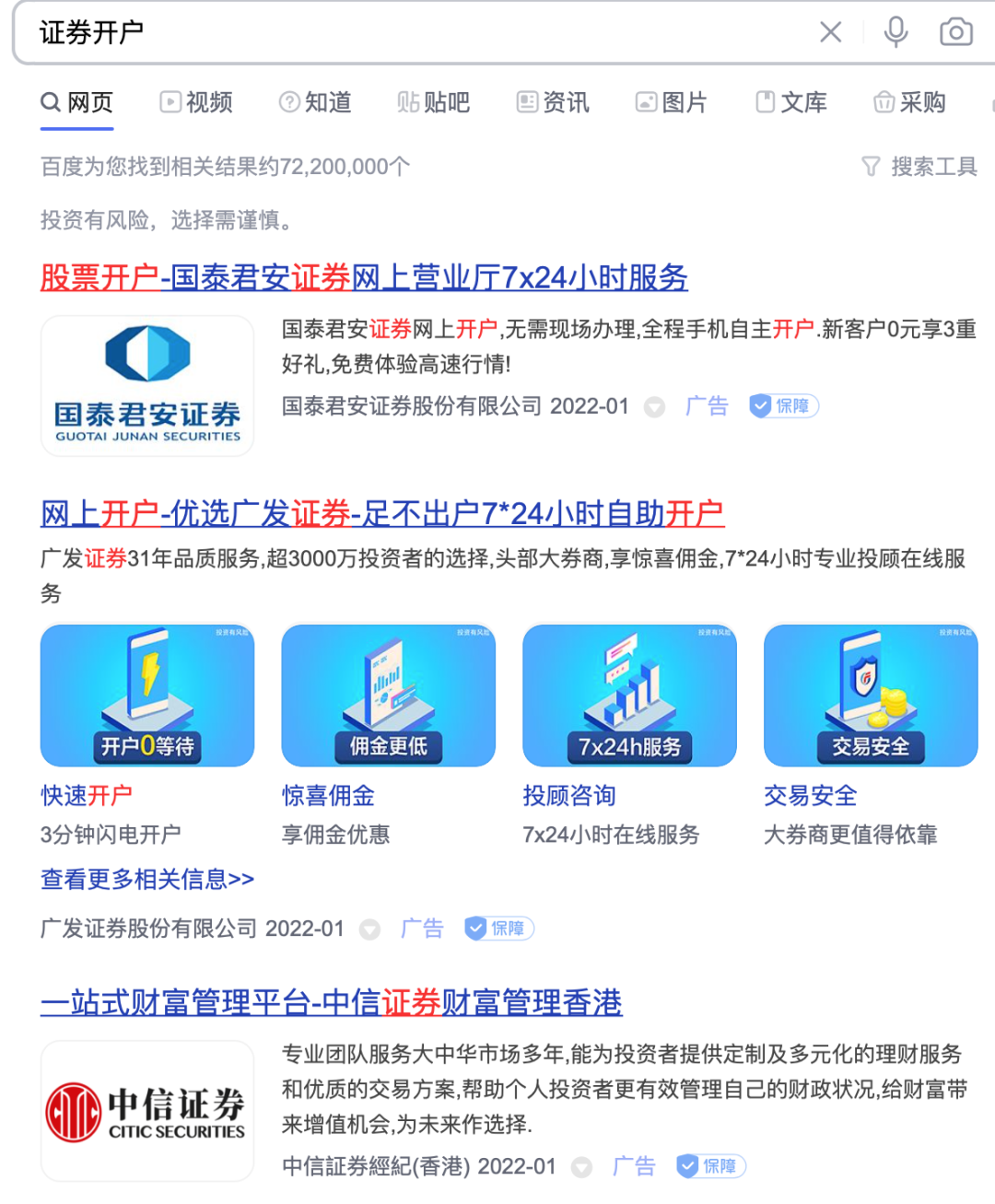 作为券商公域转化新客的原有渠道,搜索广告目前随着抖音、小红书等内容媒介的兴起,市场上也已有券商开始探索内容开户广告,但目前仍处于探索阶段,并未给券商带来稳定客源。