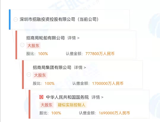 其中,招融投资控股的受理日期是2021年12月31日,发起人或主要股东为招商局轮船有限公司,所持股份为100%。天眼查数据显示,招商局轮船为央企招商局集团100%控股。