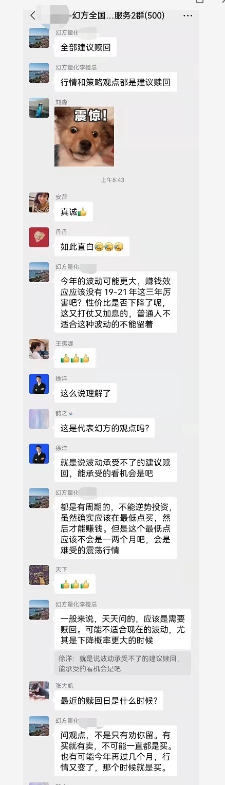 券商中国记者获悉,3月4日,在某头部券商的服务大群中,百亿私募幻方量化的某负责人直接建议投资者赎回产品。“今年的波动可能很大,又打战又加息的,普通人不适合这种波动的不能留着。一般来说,天天问的,应该是需要赎回。”