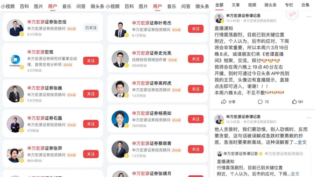 “在我们成为首家投顾集体进驻字节跳动系平台的券商后,很多非券商系的大V与我们主动接触,希望可以入职我司。”记者从申万宏源获悉,该券商已宣布投顾集体进驻今日头条等平台,打造专业的投顾IP矩阵。