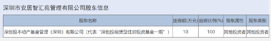 深圳市安居智汇苑管理有限公司的股东信息中,则显示:深创投不动产基金管理(深圳)有限公司(代表“深创投租赁型住房投资基金一期”)。