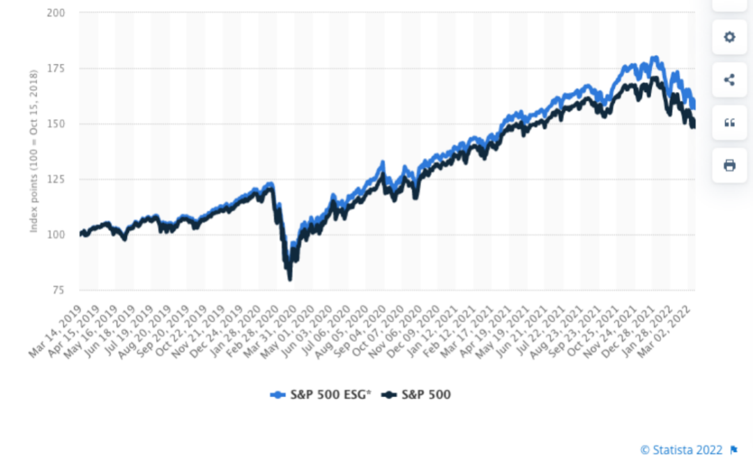(2019年3月至2022年3月间标普500ESG指数和标普500指数回报之差,图片来源:Statista)