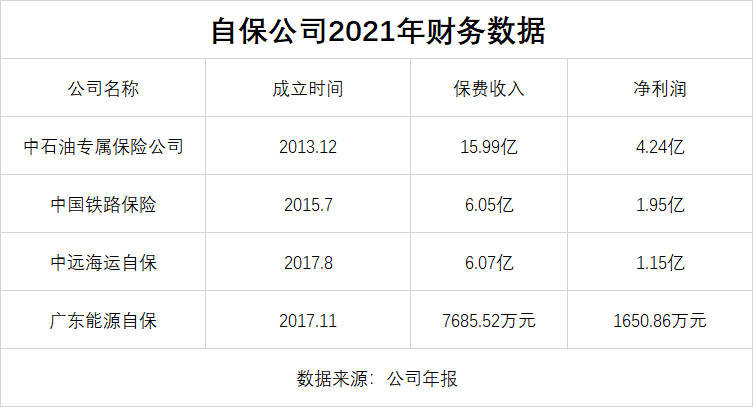 截至目前,中国仅有4家大型集团在内地成立自保公司,分别为中石油专属财产保险股份有限公司(简称“中石油专属保险公司”)、中国铁路财产保险自保有限公司(简称“中国铁路保险”)、中远海运财产保险自保有限公司(简称“中远海运自保”)、广东能源财产保险自保公司(简称“广东能源自保”)。