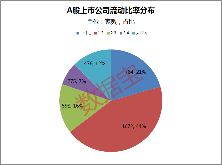 一般认为,流动比率维持二比一足以表明企业财务状况稳妥可靠,即使流动资产有一半在短期内无法变现,也能保证全部的流动负债能够得到偿还。统计显示,A股上市公司中流动比率超过2的上市公司占比已连续三年增长,最新达到了44.11%,接近一半,代表A股中短期偿债能力良好的上市公司比例正逐年增加。