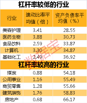 消费属性行业资产负债率低