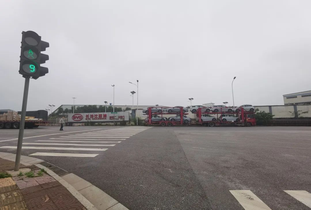 当日下午4点左右,记者来到长沙比亚迪物流功能为主的3号门,看到主要是运输物料的卡车进出,10分钟内仅有一辆满载整车的大型卡车从厂区离开,这与前日记者看到的火热场景形成鲜明对比。