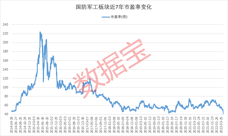 与指数一同下跌的还有板块估值。截至4月26日,国防军工整体滚动市盈率为41.44倍,估值已处于2014年以来最低位。经中航证券测算,核心军工公司市盈率中位数对应2022年32倍左右,2025年15倍左右。板块PEG(市盈率相对盈利增长比率)接近于1,已经显得足够便宜。