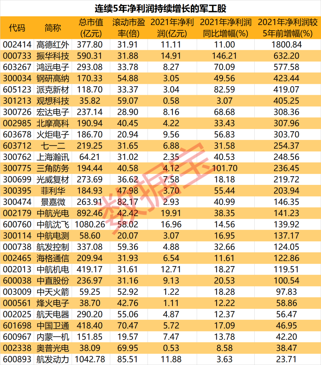 军工股盈利能力稳定