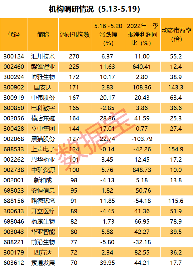 汇川技术成为近一周调研机构数量最多的股票。数据显示,合计有270家机构调研了该公司。