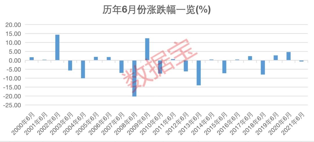 数据宝统计,自2000年至2021年,这22年间,6月份上证指数收涨的仅有12次,胜率不到60%,数据上看并无明显规律;与此同时,美股三大指数同样未表现出明显规律。