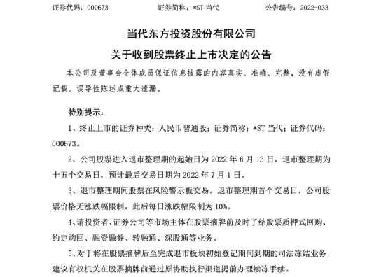 上述三家公司股票将自2022年6月13日起进入退市整理期,退市整理期届满的次一交易日,深交所将对上述公司股票予以摘牌。