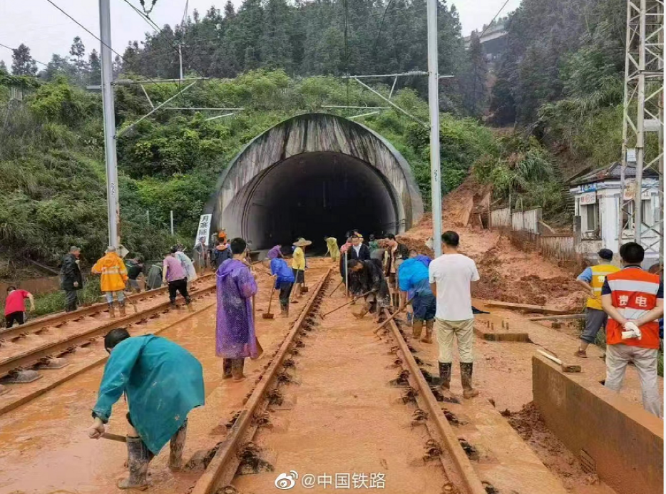 据央视新闻报道,6月4日10时30分许,贵阳北至广州南的D2809次旅客列车行驶在贵广线榕江站进站前的月寨隧道口时,撞上突发溜坍侵入线路的泥石流,导致7号、8号车发生脱线。