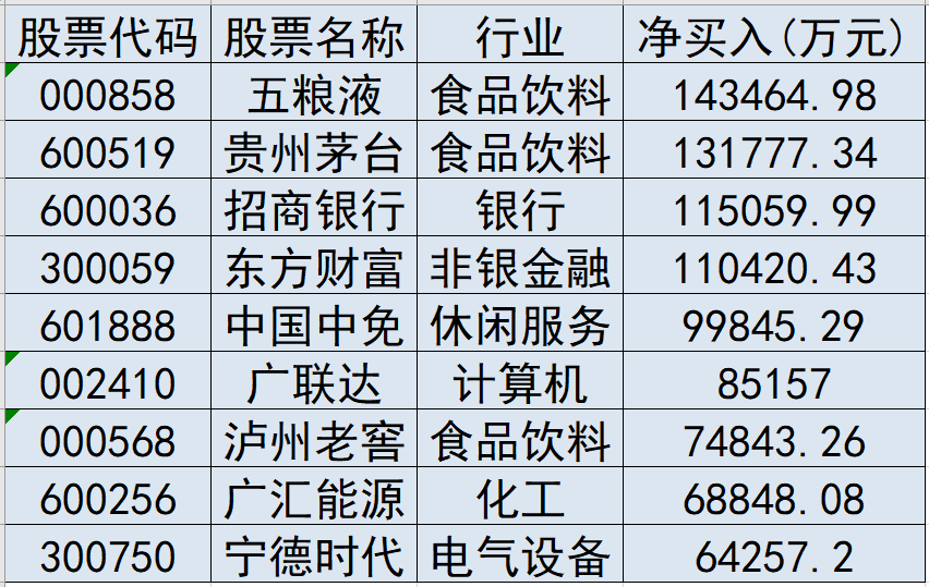 本周,北上资金大举增持“茅族”股,五粮液、贵州茅台包揽净买入前两位,分别为14.35亿元、13.18亿元;招商银行、东方财富也获得超10亿元的净买入,中国中免、泸州老窖、宁德时代、盐湖股份等逾百股则获得北上资金超亿元的加仓。