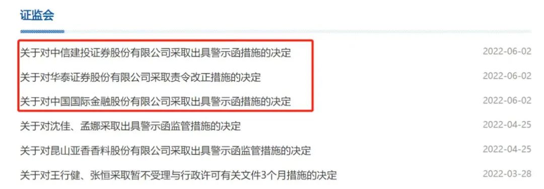 证监会认为,上述问题反映出中信建投合规管理不到位。根据《证券公司和证券投资基金管理公司合规管理办法》第三条、第三十二条的规定,决定对中信建投采取出具警示函的行政监督管理措施。