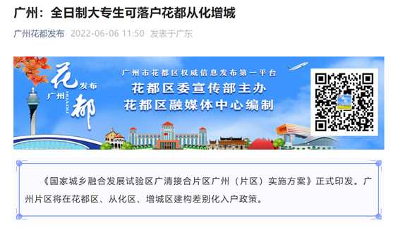 6月6日,证券时报记者从“广州花都发布”公众号获悉,《国家城乡融合发展试验区广清接合片区广州(片区)实施方案》正式印发。广州片区将在花都区、从化区、增城区建构差别化入户政策。