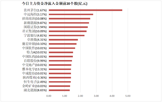 今日沪深两市主力资金开盘净流出81.25亿元,尾盘净流入10.12亿元,两市全天资金净流出279.11亿元。