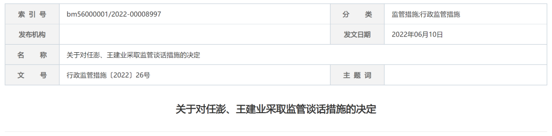 此外,证监会还指出,任澎作为主要分管高级管理人员、王建业作为公司时任合规负责人,对海通证券的相关违规行为负有领导责任。按照《境外办法》第三十二条的规定,证监会决定对以上人员采取监管谈话措施。