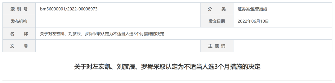 证监会还指出,杨亮作为公司时任并购重组财务顾问业务负责人,对上述违规行为负有领导责任;左宏凯、刘彦辰、罗舜作为主办人,过程中未勤勉尽责。证监会决定对杨亮出具警示函,并认定左宏凯、刘彦辰、罗舜为不适当人选,在2022年6月7日至2022年9月6日期间,不得担任上市公司并购重组财务顾问业务相关职务或者实际履行上述职务。