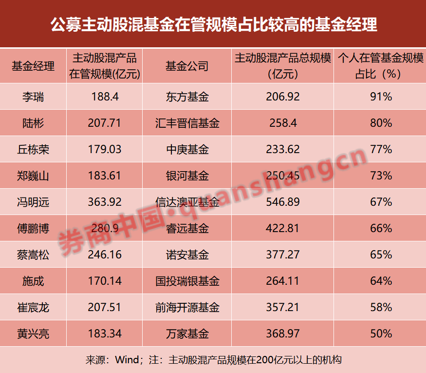 另一位业内人士则提醒记者,部分基金经理的在管规模占比较较高,可能是因为联合挂名。“比如某公募正在推广合作管理的模式,他家的一位基金经理挂名了好几只产品。从数据上看,这位基金经理个人的在管规模会比较大。”