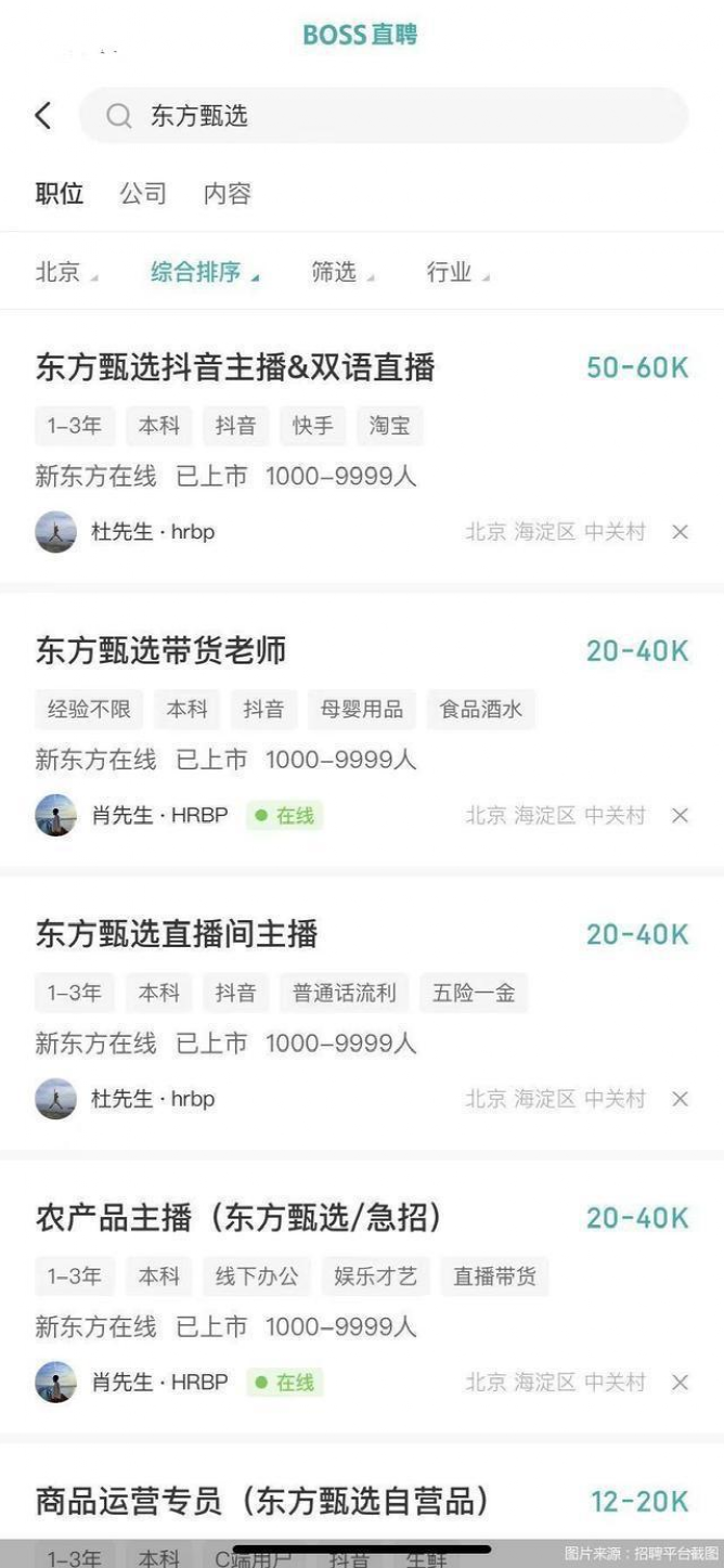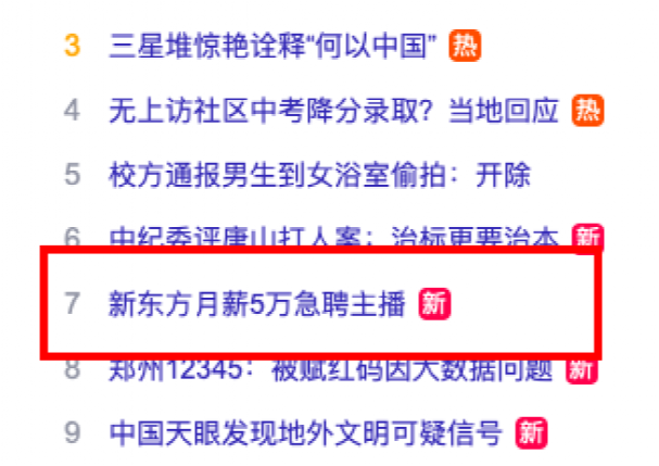 今日下午,#新东方月薪5万急招主播#消息冲上百度热搜。