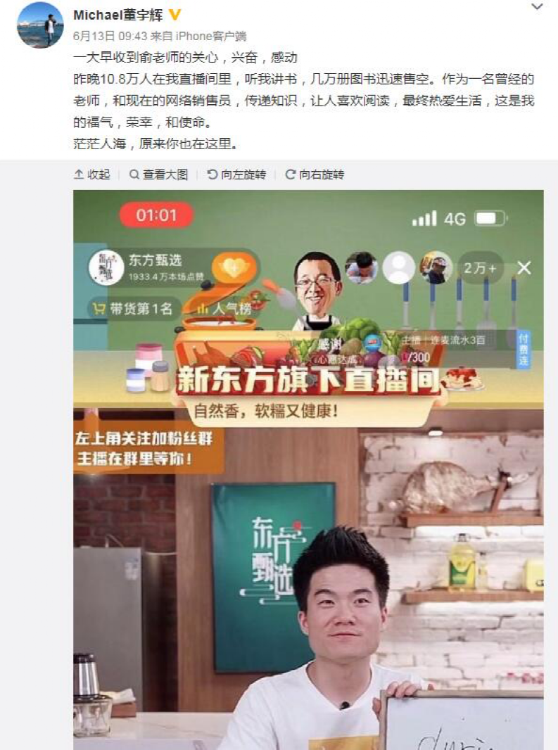 与该消息一同上热搜的,还有#新东方主播董宇辉回应爆火#。